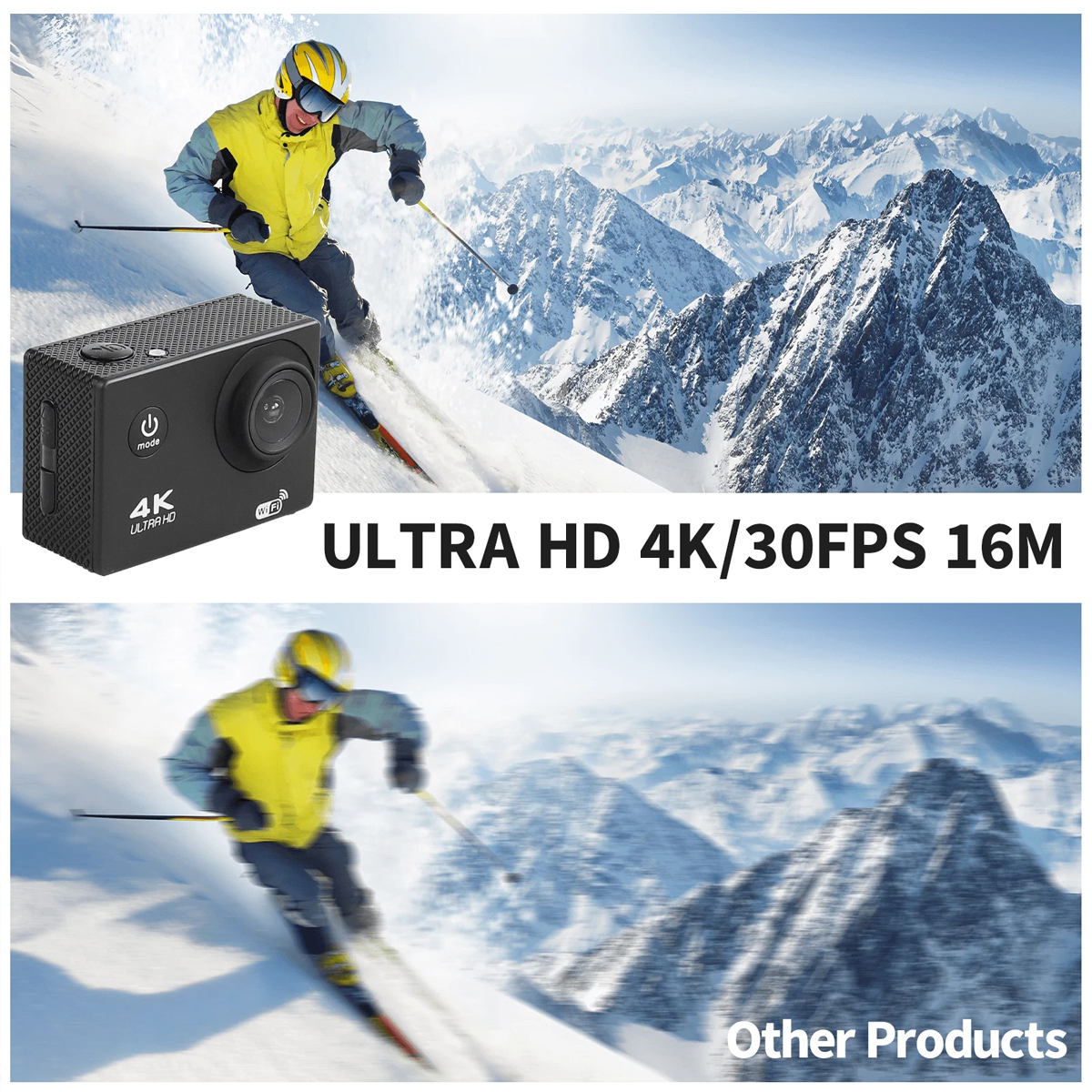 4K, función anti-vibración, temporizador de cámara, Wi-Fi incorporado, a prueba de polvo, impermeable, pantalla LCD