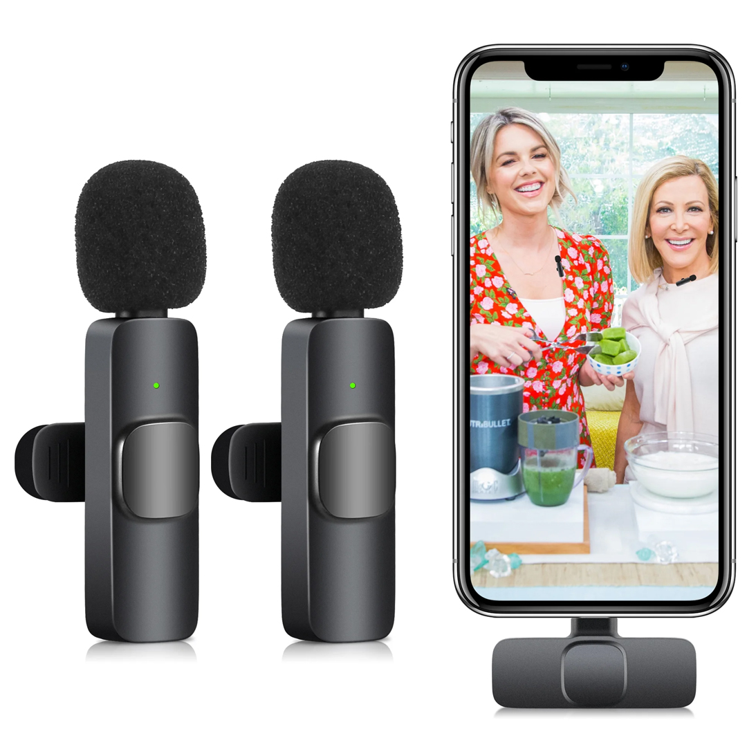 Configuración fácil y micrófonos duales: este micrófono inalámbrico lavalier es fácil de usar para dos usuarios. Conecte el transmisor al teléfono inteligente y presione las teclas del interruptor simultáneamente, los micrófonos se conectarán automáticamente con el receptor.